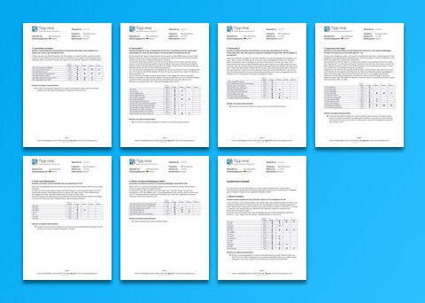 Sie können alle Protokollbögen auch in leerer Form ausdrucken, um die Überprüfung ohne das iPad durchzuführen.